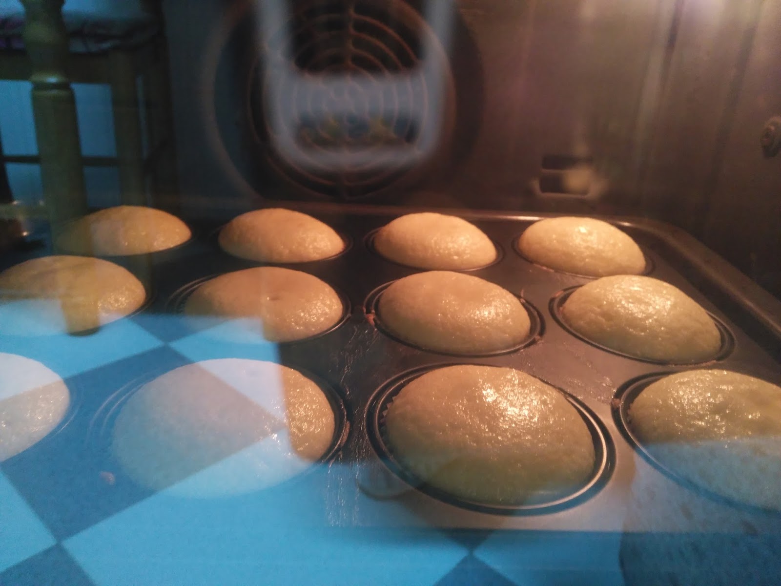 Vertemos la mezcla en los moldes llenando hasta las 3/4 partes y horneamos 20 minutos a 180ºC.